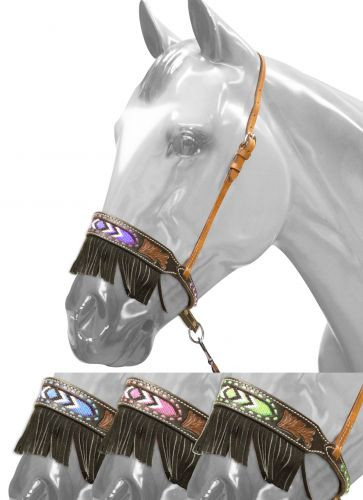 Loading... Please wait...Showman Black and medium leather noseband with beaded inlay and suede fringe.!