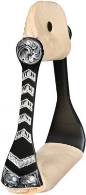 Showman Light Weight Black Aluminum Bell Stirrup With Silver Engraved Accents!