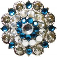 Click the button below to add the Western Silver Concho w/ Blue & Clear Rhinestones & Chicago Screw 1½" Diameter to your wish list.